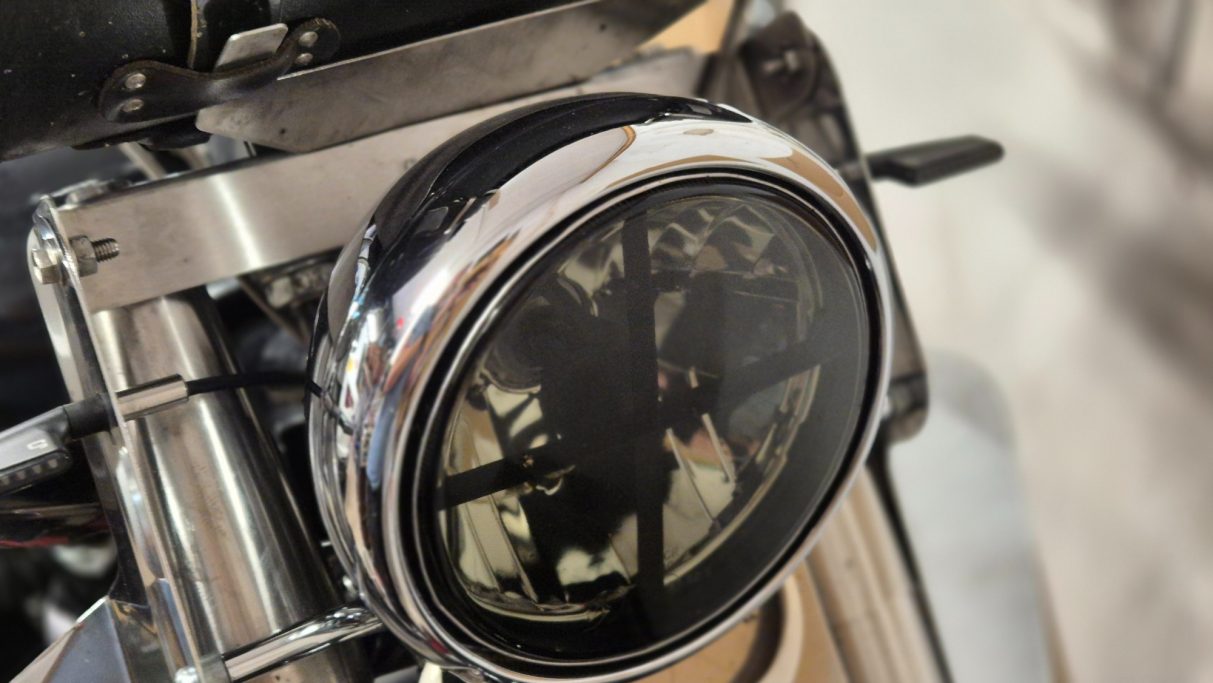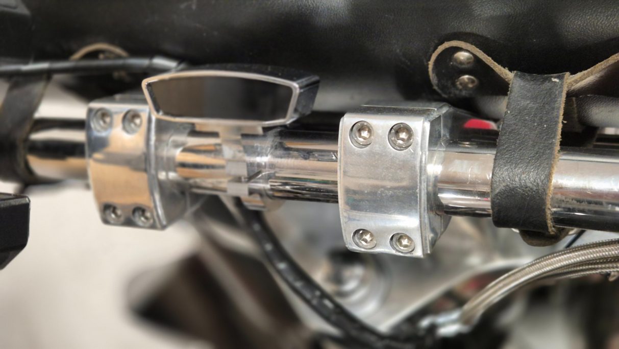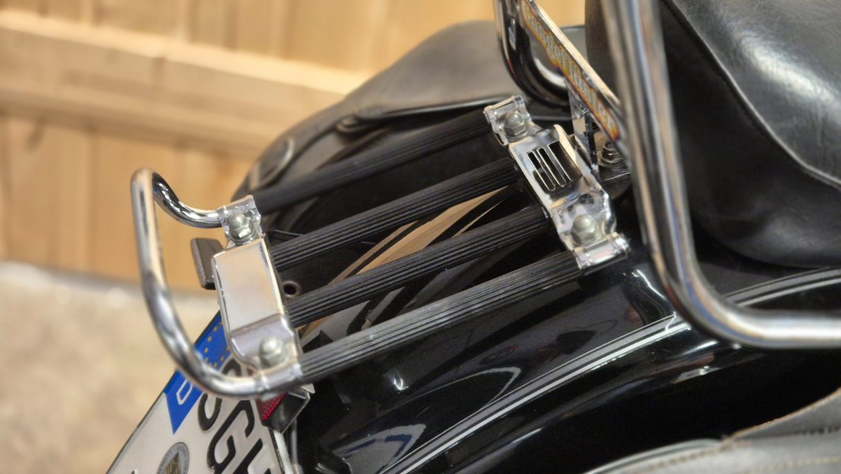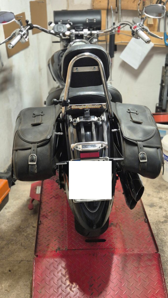 An Zubehör war schon angebaut: Silvertail-Auspuff, Windschild mit Leggins, Satteltaschenhalter.