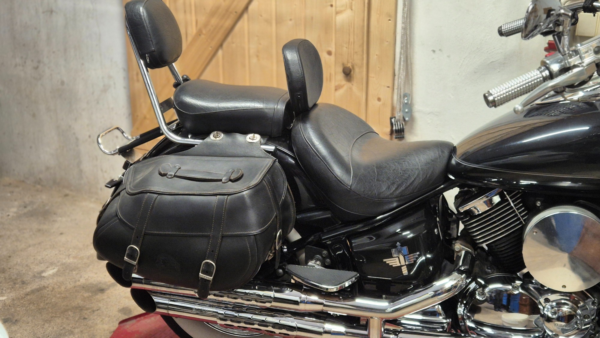 An Zubehör war schon angebaut: Silvertail-Auspuff, Windschild mit Leggins, Satteltaschenhalter.