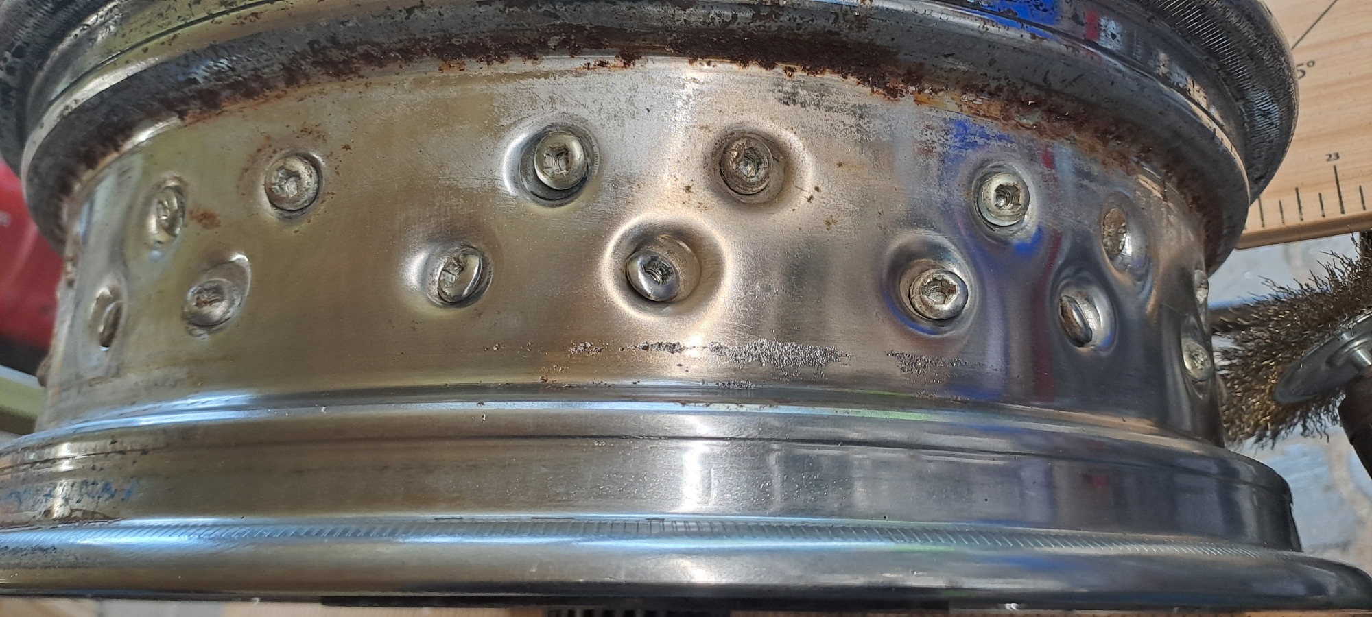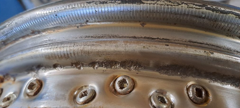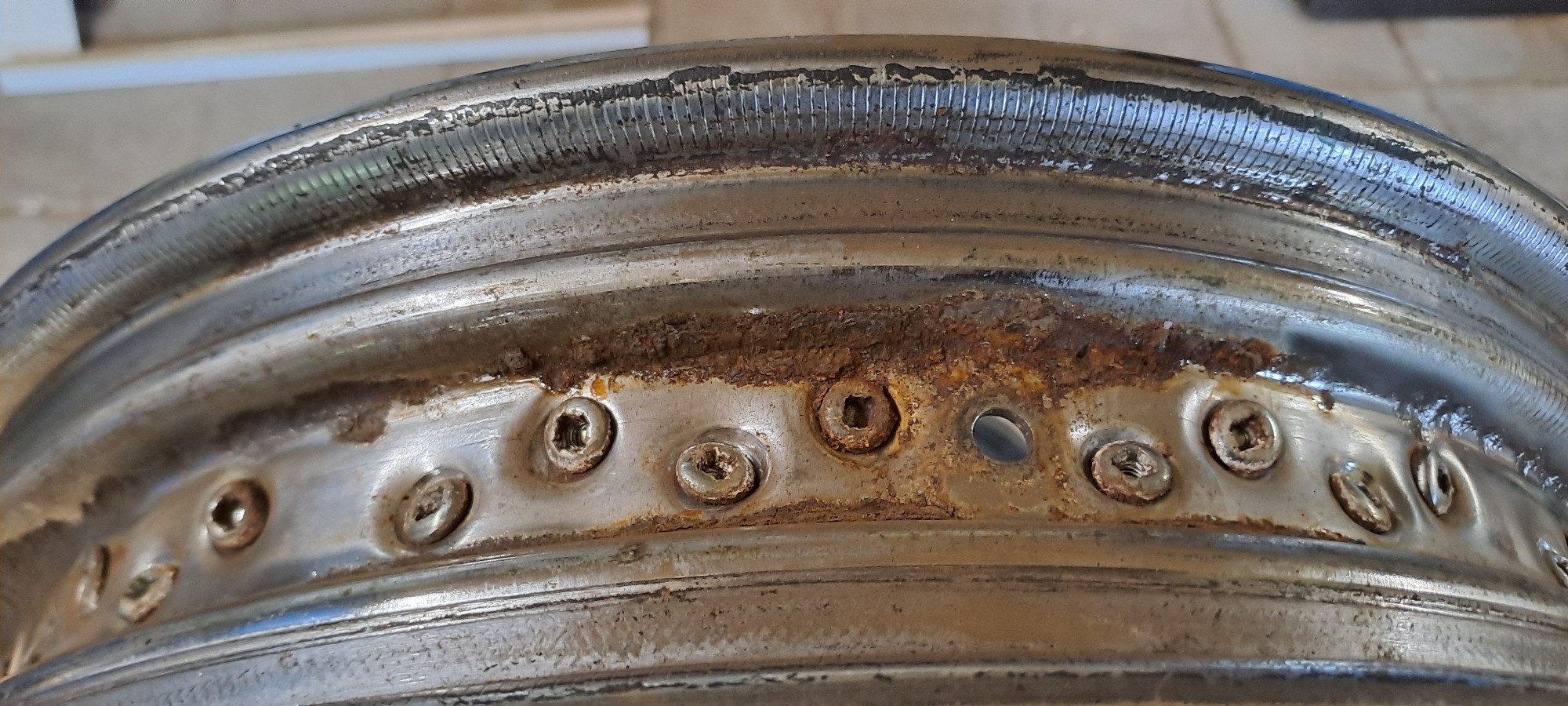 Beim letzten Reifenwechsel hat der "Freundliche" festgestellt, dass die Felgen innen schon ganz schön verrostet sind. Also säubern und versiegeln, bevor der neue Reifen aufgezogen wird.
