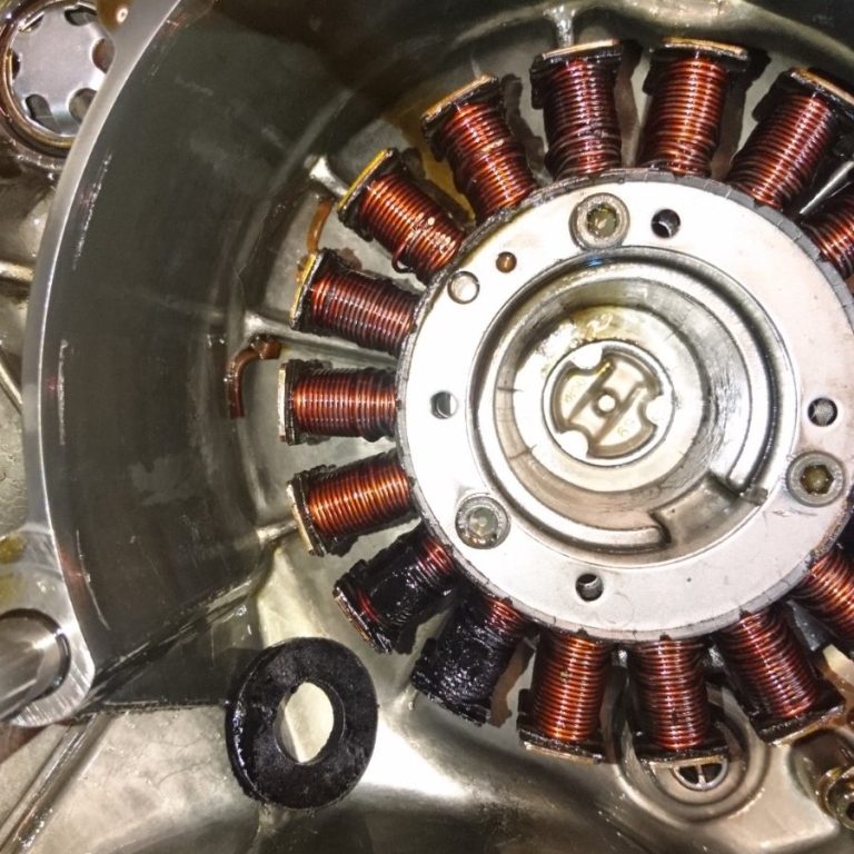 Durch einen dummen Fehler beim Einstellen der Ventile hat sich die Mutter der Lichtmaschine gelöst und ist in den Motor gefallen. Die habe ich auch wieder rausbekommen und festgeschraubt. Leider hatte ich übersehen, dass da noch eine Unterlegscheibe war, die erst mal in der Lichtmaschine rumpolterte. Und dadurch den Stator beschädigte.